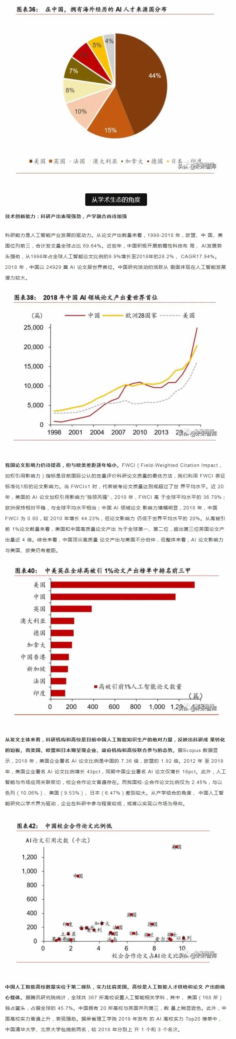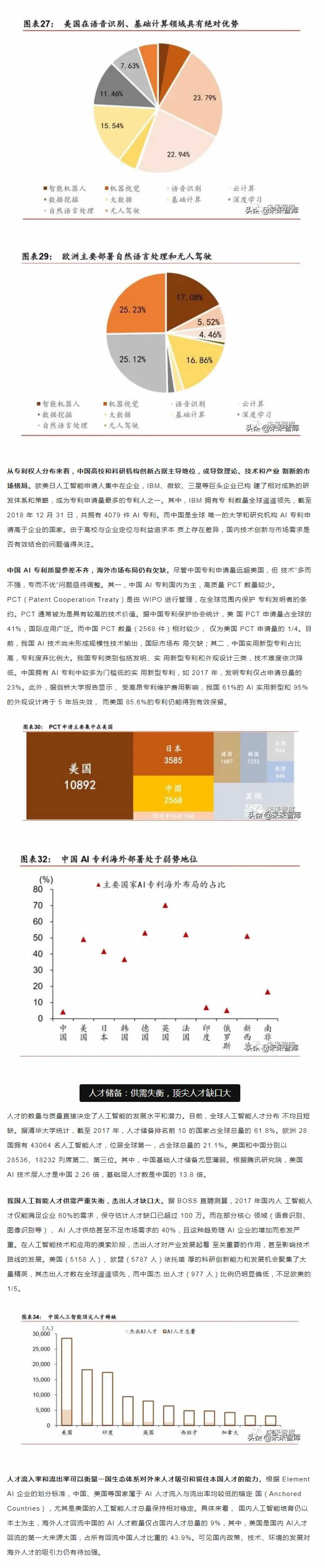從中短期看,技術(shù)優(yōu)化、落地場(chǎng)景的開(kāi)拓和滲透是是主要的增長(zhǎng)點(diǎn);從長(zhǎng)期看,智能生 態(tài)體系建設(shè)才是彎道超車的必由之路。人工智能產(chǎn)業(yè)的核心競(jìng)爭(zhēng)力在于生態(tài)體系的建設(shè), 包括大數(shù)據(jù)、算法理論、底層技術(shù)、應(yīng)用生態(tài)、人才儲(chǔ)備等層面。而我國(guó)人工智能產(chǎn)業(yè)生 態(tài)和基礎(chǔ)設(shè)施建設(shè)正處于探索期,如何實(shí)現(xiàn)核心技術(shù)的突破和拓寬人工智能技術(shù)與社會(huì)經(jīng) 濟(jì)融合場(chǎng)景著力點(diǎn)在于人才儲(chǔ)備和持續(xù)的研發(fā)投入。從人才的角度,收窄技術(shù)差距的根本 在于優(yōu)化人的知識(shí)結(jié)構(gòu)和能力。當(dāng)前政策應(yīng)側(cè)重建立人才培養(yǎng)體系,為人工智能打造人才 資源池,尤其是在基礎(chǔ)學(xué)科L域突破人才瓶頸。同時(shí),打破“唯數(shù)量論”的科研評(píng)價(jià)和考 核體系,改變?nèi)瞬偶?lì)機(jī)制勢(shì)在必行。我國(guó)人工智能專利申請(qǐng)和科研產(chǎn)出數(shù)量L先, 但質(zhì)量堪憂。唯有從源頭改變?cè)u(píng)價(jià)機(jī)制,才能扭轉(zhuǎn)“量多而質(zhì)優(yōu)”的問(wèn)題。從研發(fā)的角度, 企業(yè)技術(shù)優(yōu)化和創(chuàng)新能力是解決產(chǎn)業(yè)痛點(diǎn)的關(guān)鍵。基礎(chǔ)研究的投入周期長(zhǎng)、不確定性大、 和風(fēng)險(xiǎn)G特點(diǎn)決定了其難以短期內(nèi)獲得投資回報(bào),但基礎(chǔ)L域的突破將為經(jīng)濟(jì)帶來(lái)長(zhǎng)期和 廣泛的溢出效應(yīng),因此,國(guó)內(nèi)更應(yīng)關(guān)注底層技術(shù)的研發(fā)投入,扭轉(zhuǎn)傳統(tǒng)技術(shù)路徑,顛覆核 心技術(shù)受制于人的被動(dòng)局面。此外,人工智能在賦能機(jī)器模擬人類進(jìn)行決策的同時(shí)產(chǎn)生的 倫理道德、隱私保護(hù)和社會(huì)安全問(wèn)題值得關(guān)注。由于法律法規(guī)存在滯后性,尚無(wú)法對(duì)人工 智能技術(shù)進(jìn)行有效監(jiān)管。我國(guó)應(yīng)加快人工智能倫理研究,及早識(shí)別人工智能治理風(fēng)險(xiǎn)。