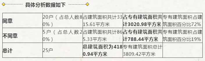 2016年1月10日,湛江市霞山區(qū)某小區(qū)就召開(kāi)了業(yè)主大會(huì),并作出決議,確認(rèn)該小區(qū)業(yè)主共有66戶,其中同意加裝小區(qū)電梯的業(yè)主數(shù)為52戶(東門總共25戶,其中20戶同意加裝;中門總共17戶,其中9戶同意加裝;西門總共24戶,其中23戶同意加裝),該小區(qū)業(yè)主大會(huì)會(huì)議決定:在該小區(qū)東門、西門各加裝一臺(tái)電梯。2016年11月18日,根據(jù)該小區(qū)的申請(qǐng),湛江規(guī)劃局依法頒布了在該小區(qū)東門、西門各加裝一臺(tái)電梯的《建設(shè)工程規(guī)劃許可證》。小區(qū)西門的電梯安裝較為順利,但東門不同意安裝的5位業(yè)主對(duì)在東門安裝電梯的工程實(shí)施中百般阻撓,將車輛停放在施工現(xiàn)場(chǎng)以阻礙施工。經(jīng)派出所、社區(qū)法律顧問(wèn)等多方調(diào)解無(wú)效后,2017年9月11日,東門同意安裝的李康林等20人將不同意安裝的戴戈等5人訴上法庭,要求被告移走障礙物,不得阻止電梯安裝。 經(jīng)法院查明,涉及本案的業(yè)主共有25戶,分為三種戶型,E號(hào)戶型的建筑面積為182.78平方米、專有建筑面積為166.54平方米,F(xiàn)號(hào)戶型的建筑面積為144.48平方米、專有建筑面積為131.64平方米,G號(hào)戶型的建筑面積為172.51平方米、專有建筑面積為157.18平方米。同意加裝電梯的戶主有20戶,其中E號(hào)戶型有6戶,F(xiàn)號(hào)戶型有7戶,G號(hào)戶型有7戶,占建筑面積共計(jì)3315.61平方米,占專有建筑面積共計(jì)3020.98平方米。不同意加裝電梯的戶主有5戶,其中E號(hào)戶型有3戶,F(xiàn)號(hào)戶型有1戶,G號(hào)戶型有1戶,占建筑面積共計(jì)865.33平方米,占專有建筑面積共計(jì)788.44平方米。涉案樓房東門業(yè)主的總建筑面積為4180.94平方米。